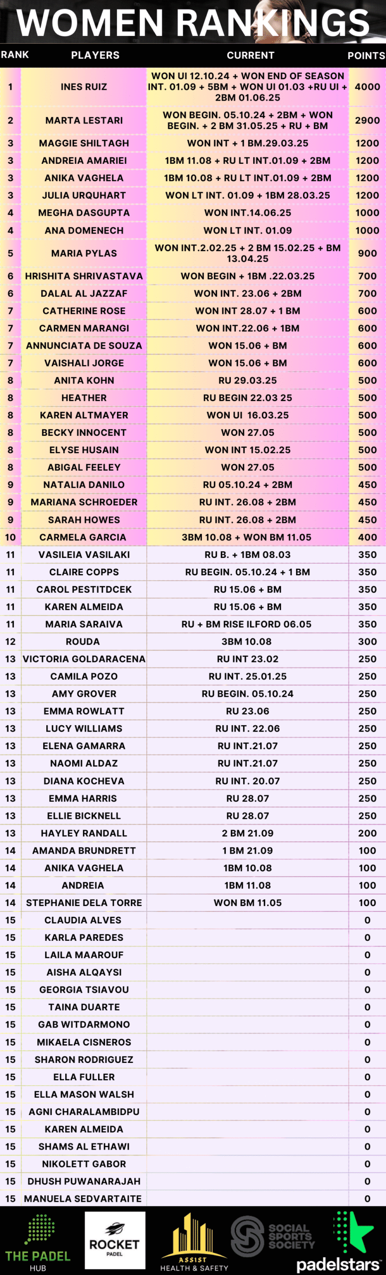 UK SERIES 3 NOVEMBER 2025 TO NOVEMBER 2026 Tap or click on the tournament E-flyer to find out more details and to sign up LIVE-RANKING LADIES TOURNAMENTS COMING SOON UK SERIES PRIZES PADEL HOLIDAYS & INTENSIVE TRAININGS LIVE-RANKING RECENT TOURNAMENTS RESULTS